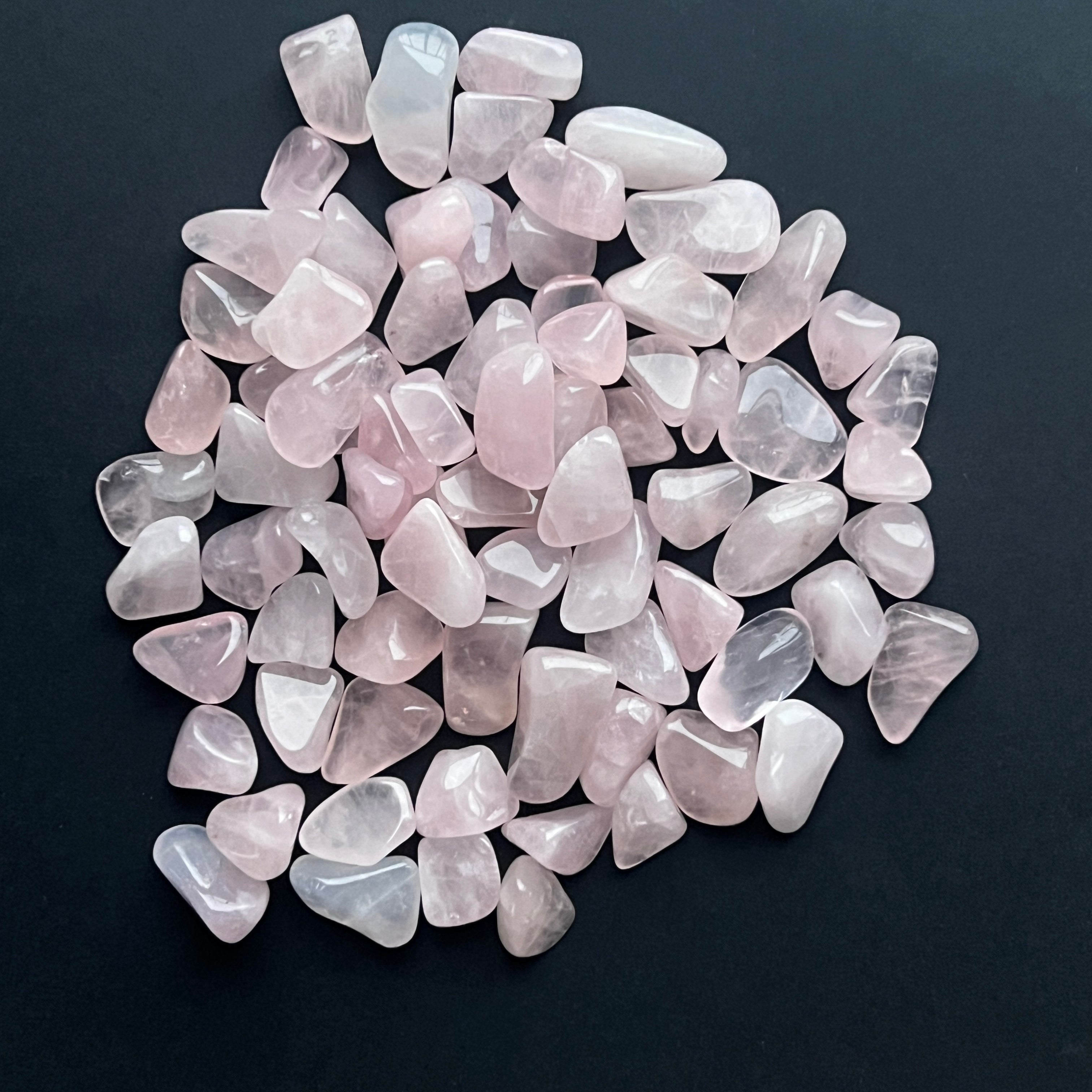 Il quarzo rosa del Sud Africa è apprezzato per le sue tonalità calde e luminose, che variano dal rosa pallido traslucido a toni più saturi, lattiginosi e delicati. In forma di chips, questi grandi frammenti rivelano la naturalezza della pietra: texture fini, trasparenze sottili e inclusioni delicate che conferiscono profondità a ogni cristallo.