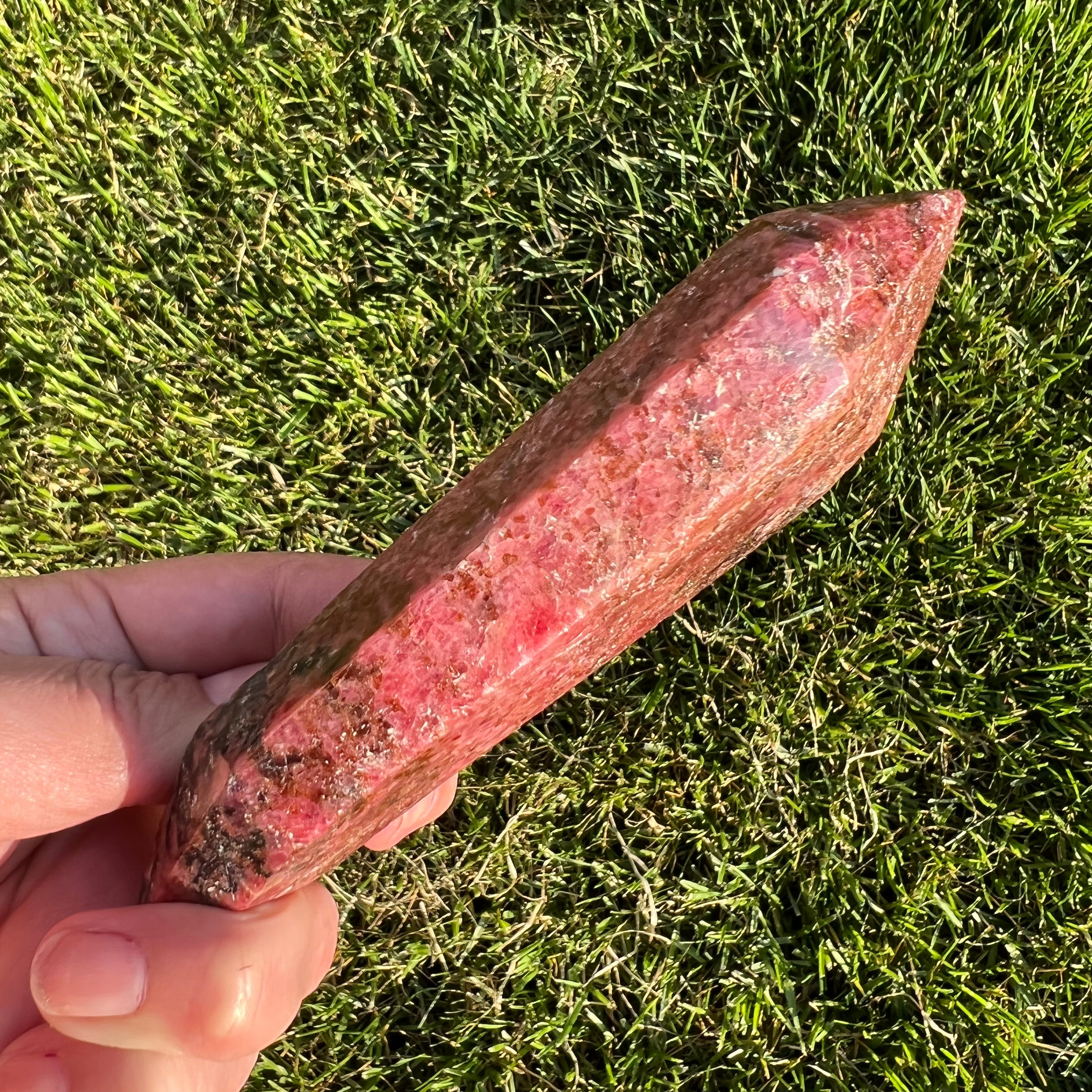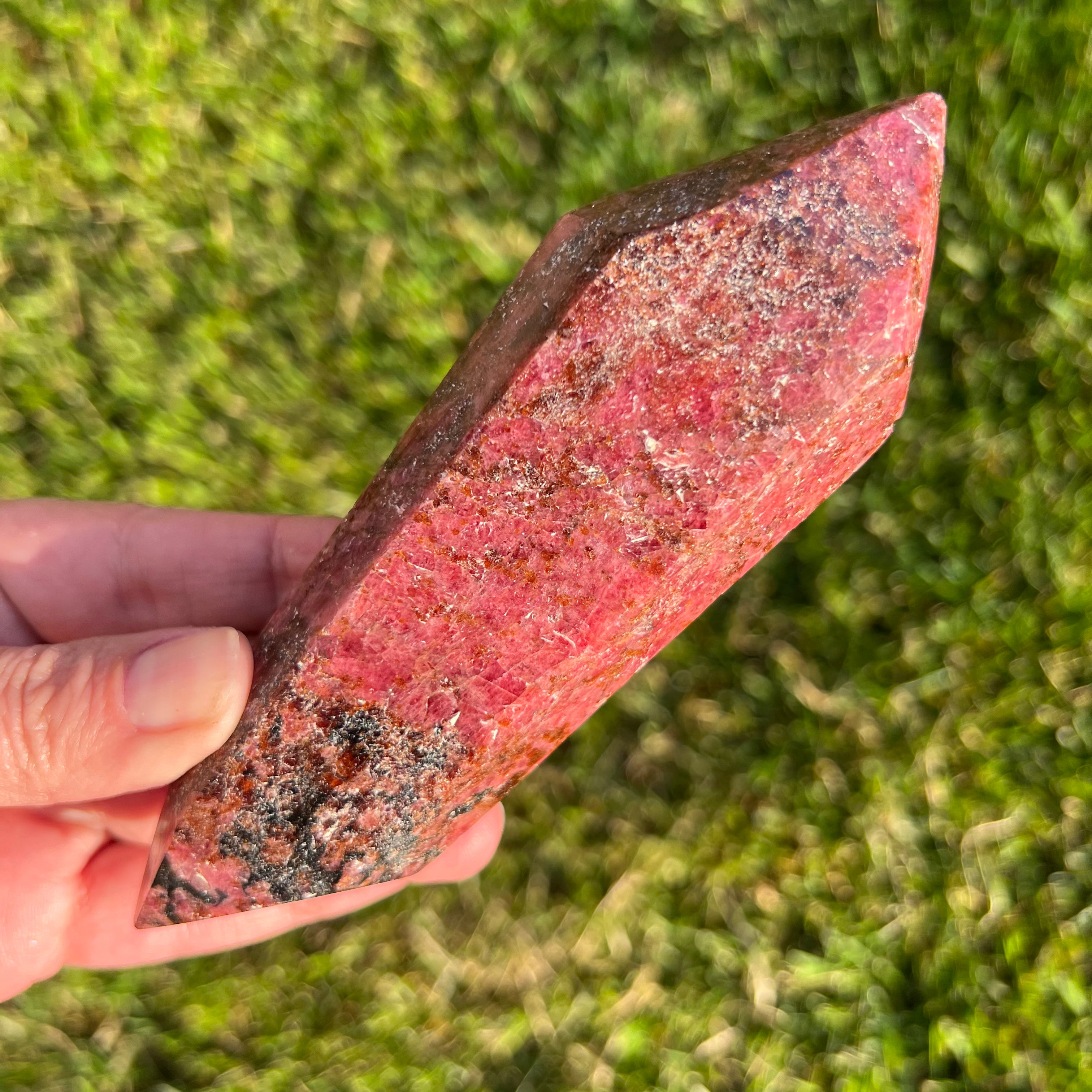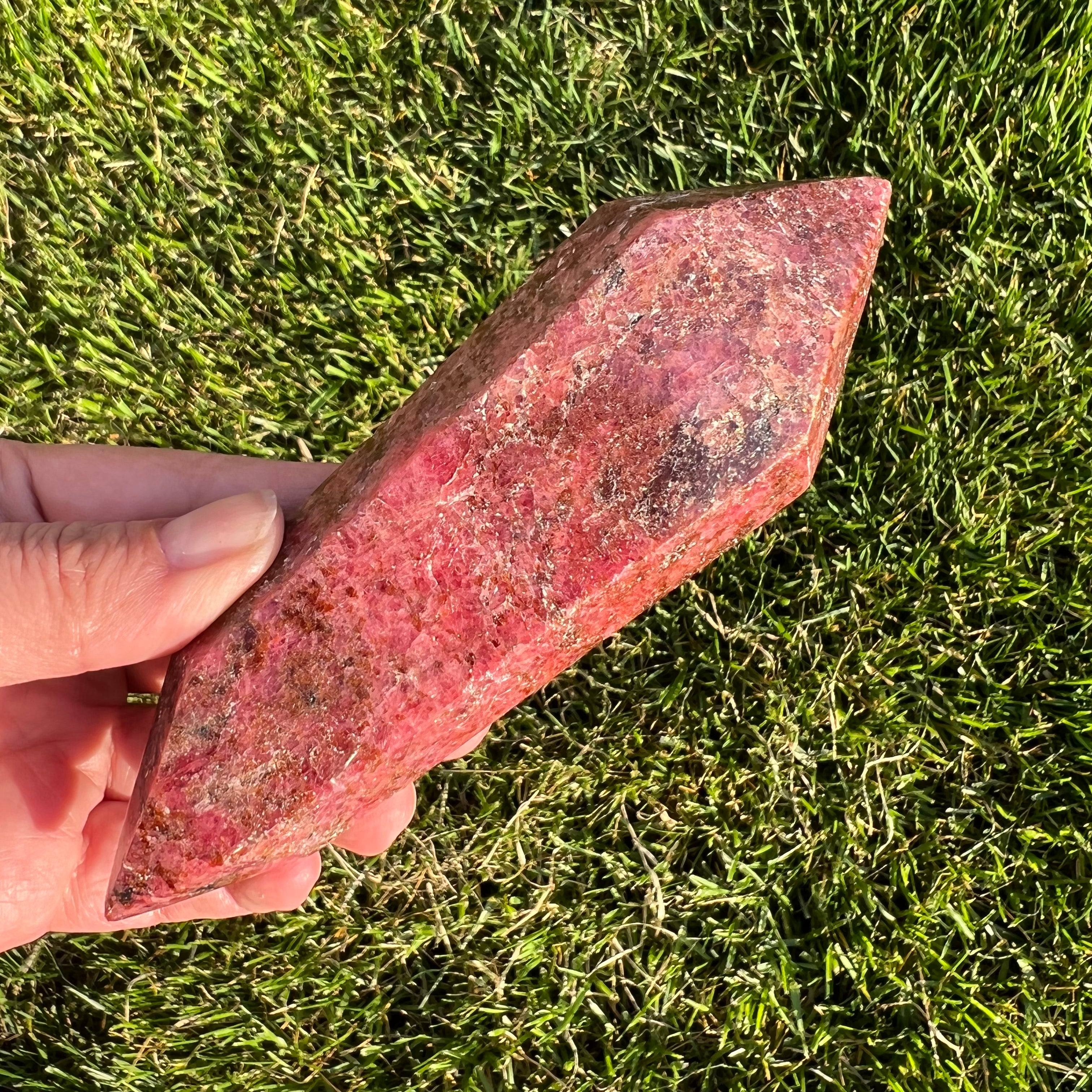 Rodonite doppia punta m3, dimensioni: 14,5 *4,5 cm