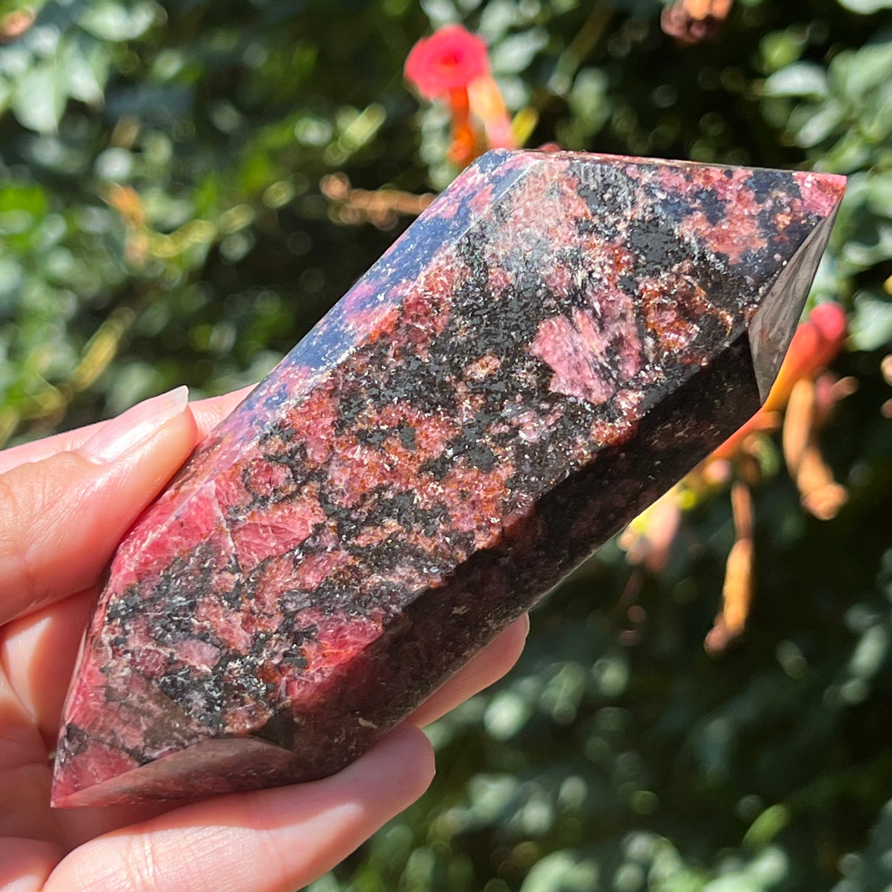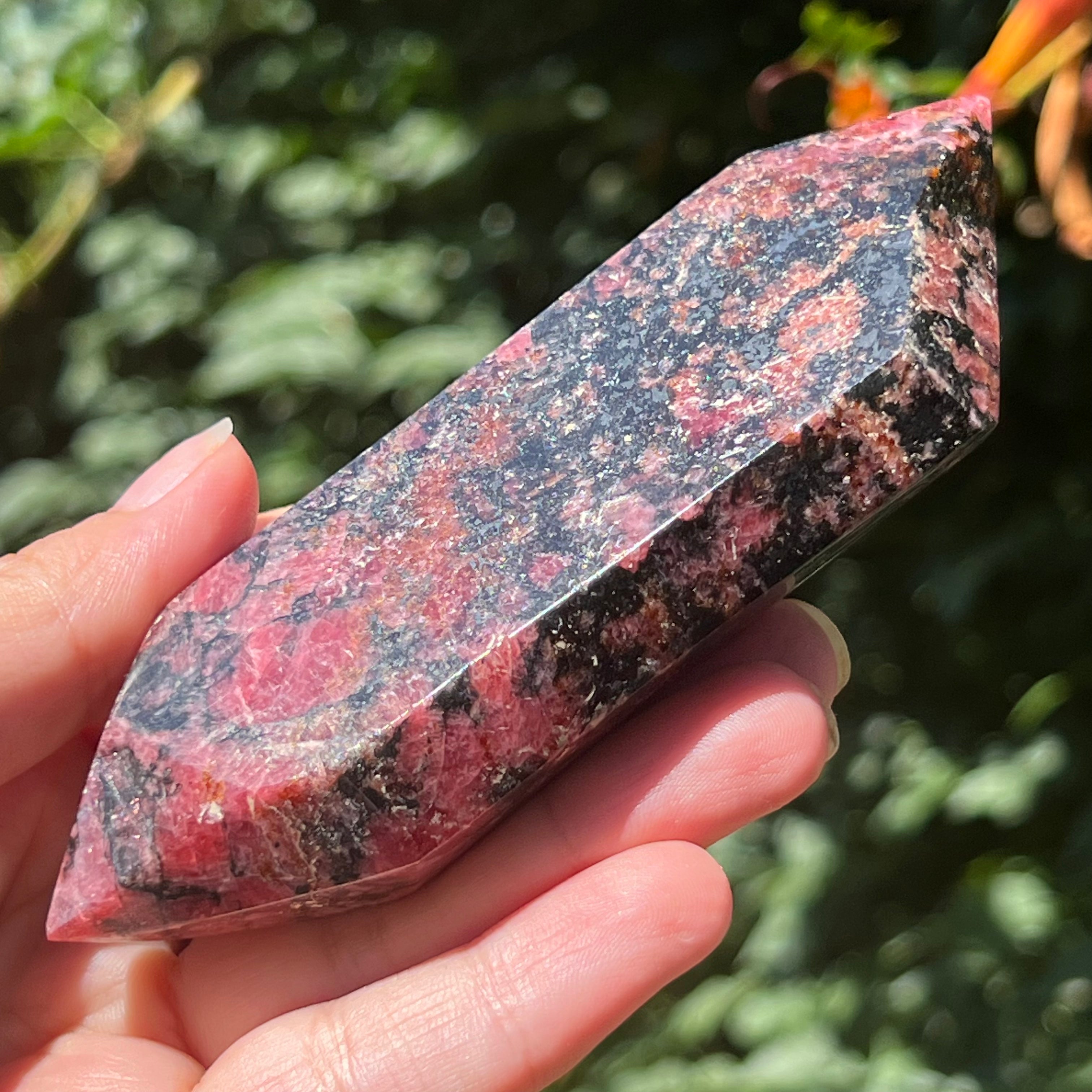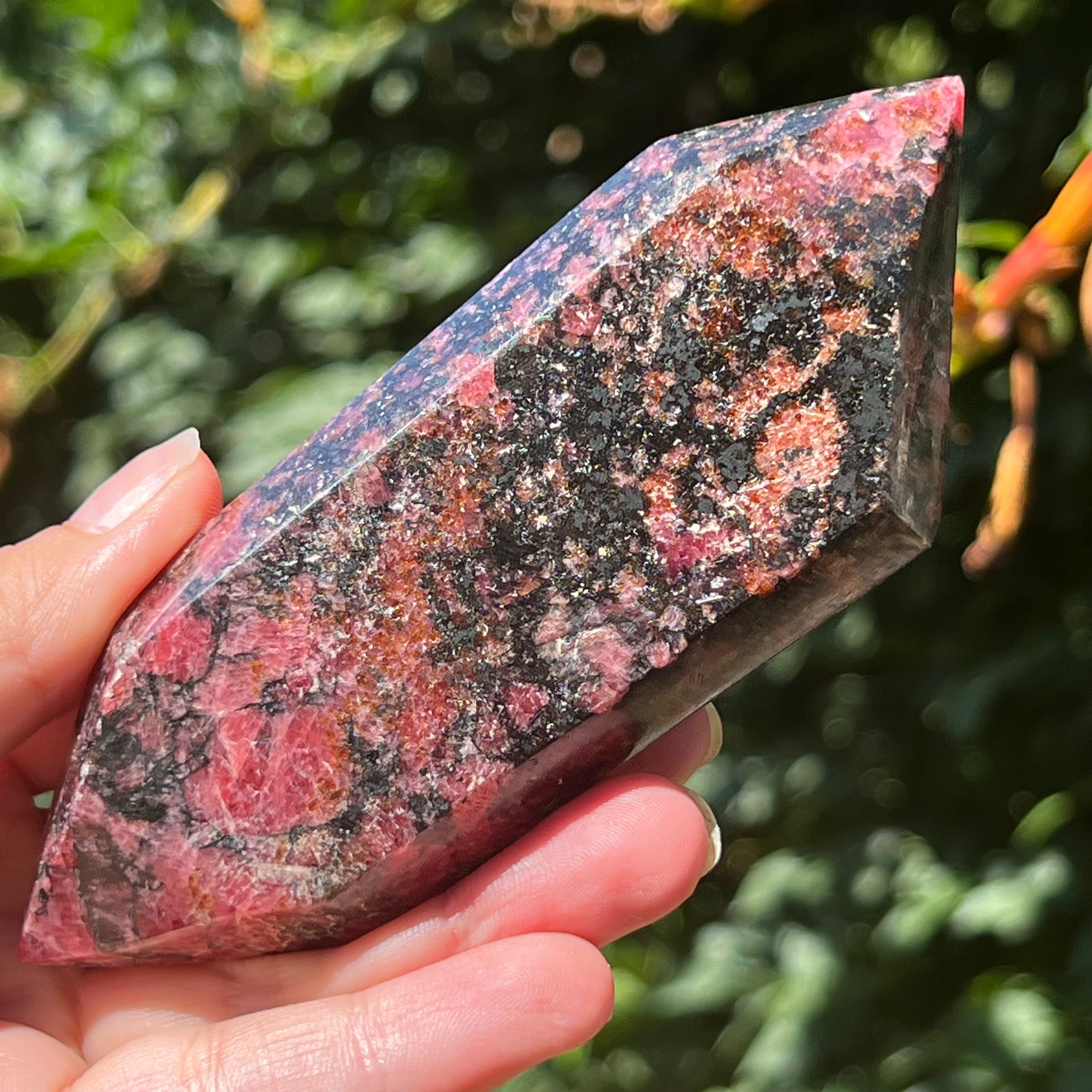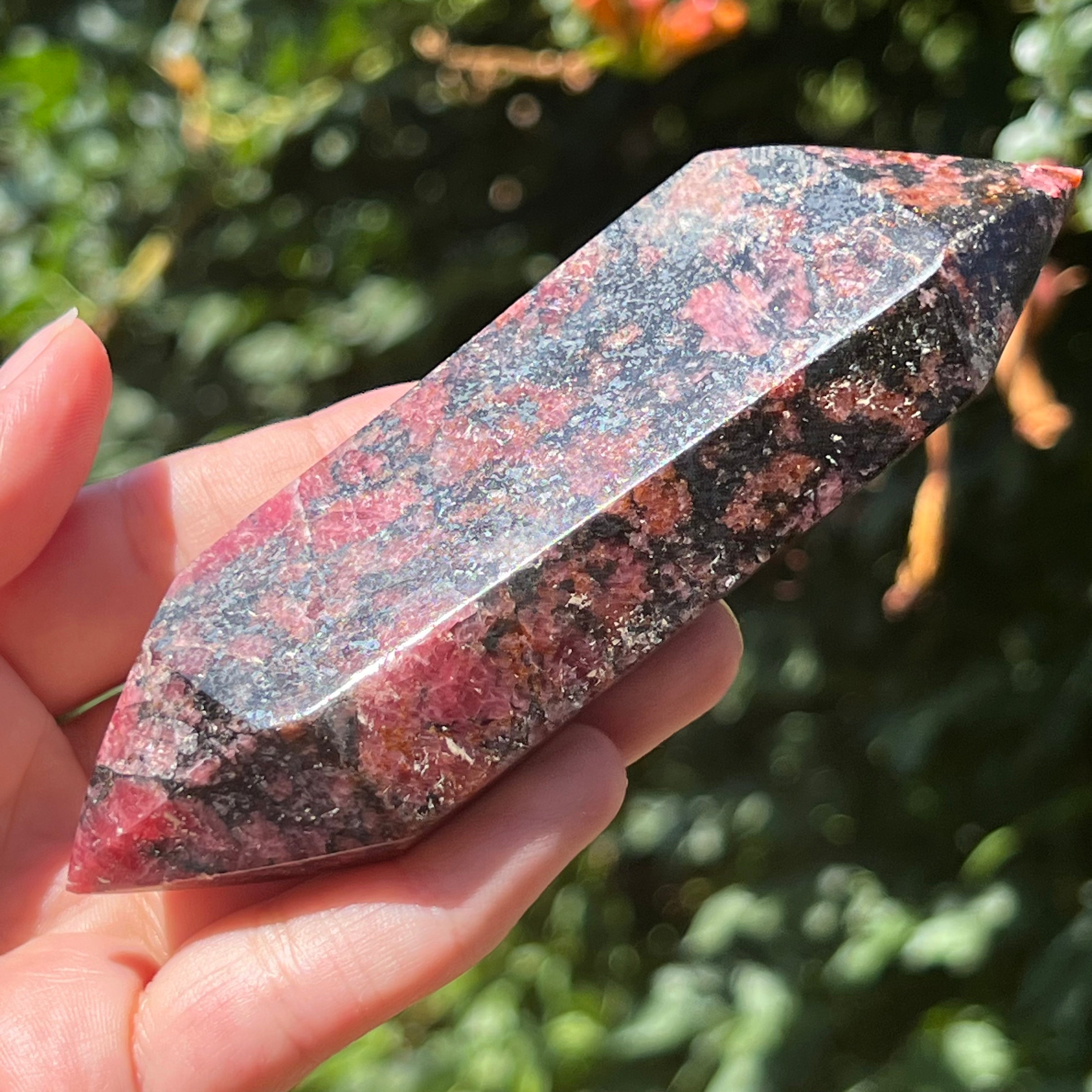 Rodonite doppia punta m5, misura: 13*5 cm
