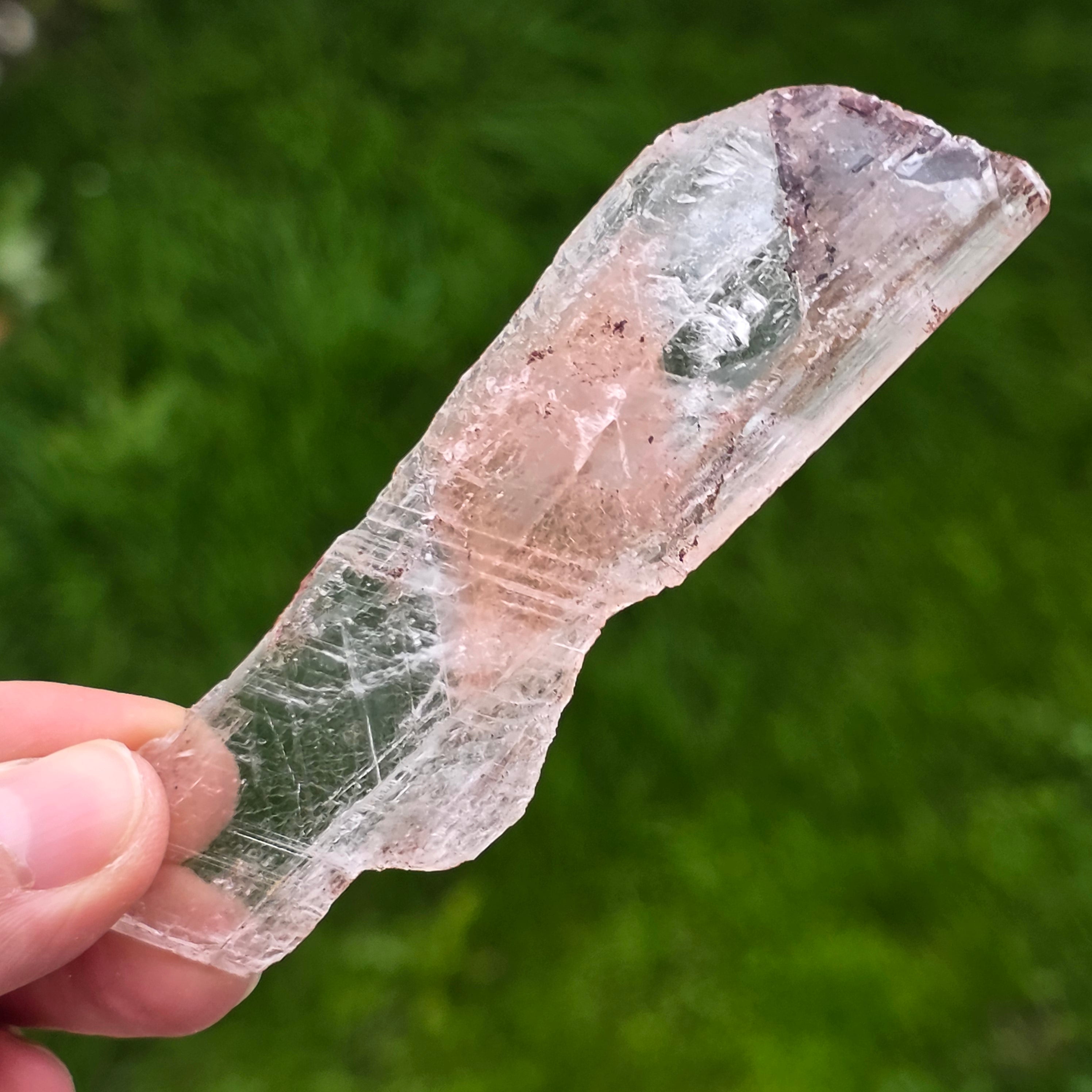 La selenite si presenta sotto forma di cristalli allungati o placche traslucide, con lucentezza setosa e texture fine, mentre l’ematite è presente sotto forma di inclusioni, pellicole o deposizioni naturali, che ne accentuano la struttura cristallina e conferiscono profondità visiva.