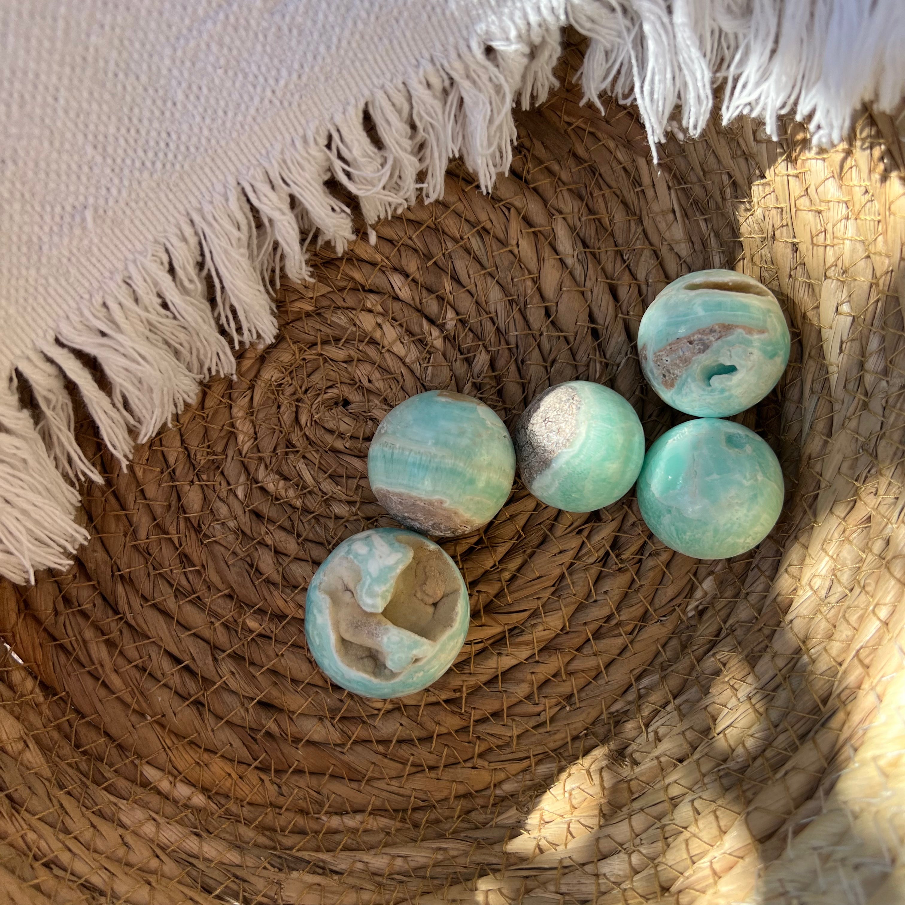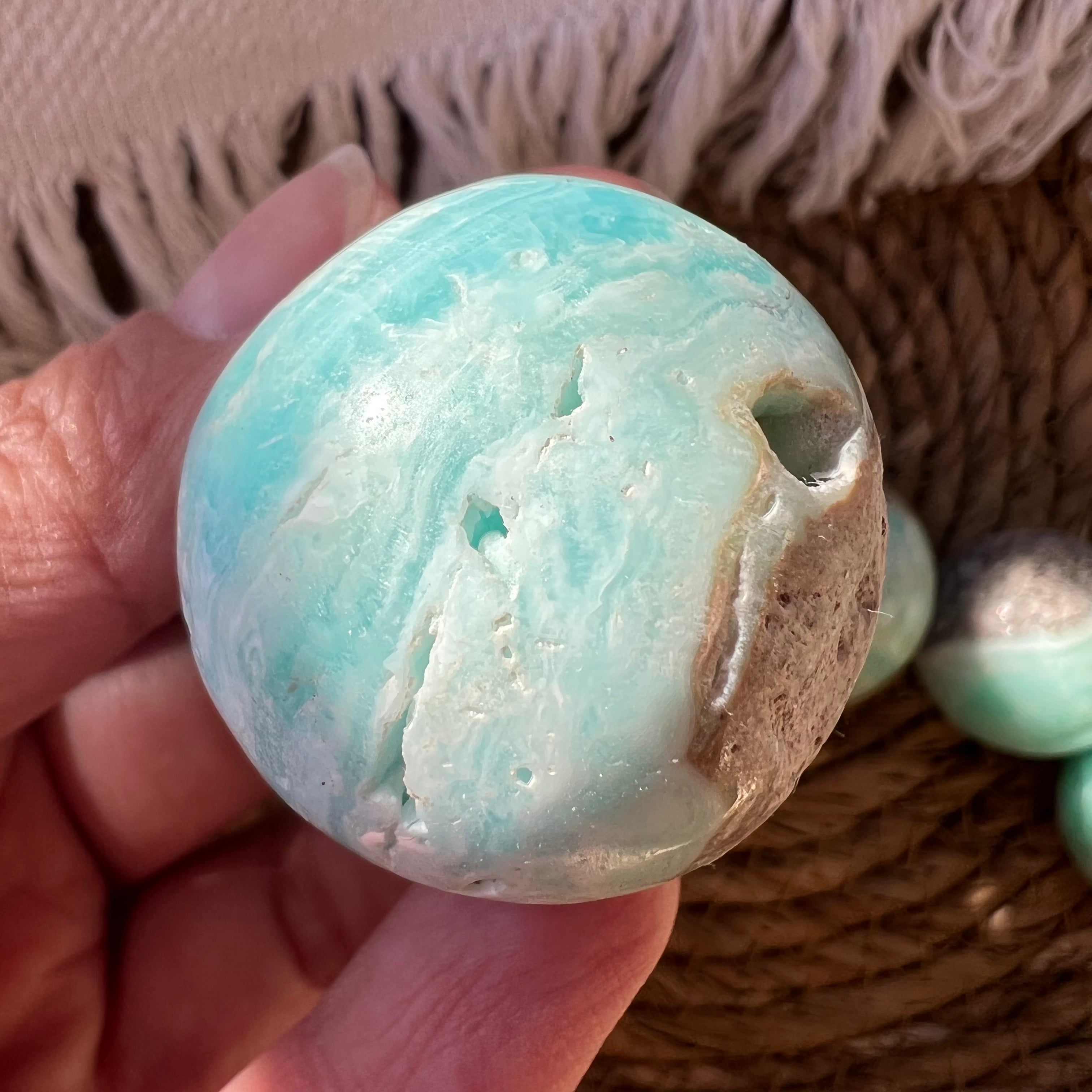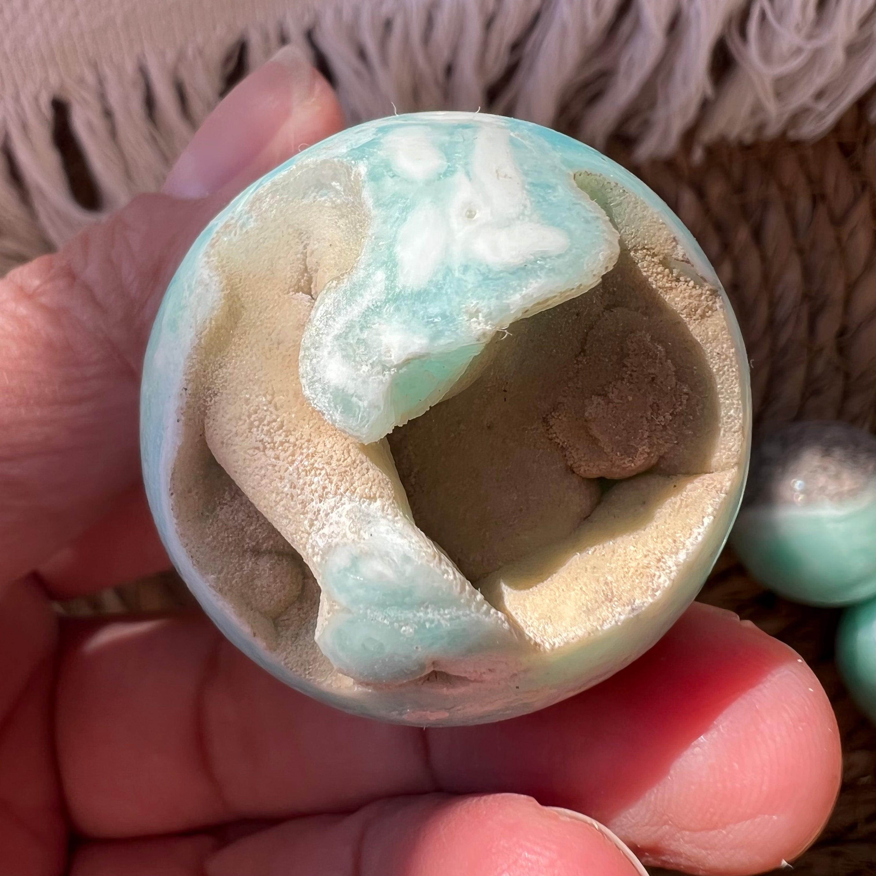 Sfera di aragonite blu m3, dimensione 3,5 cm