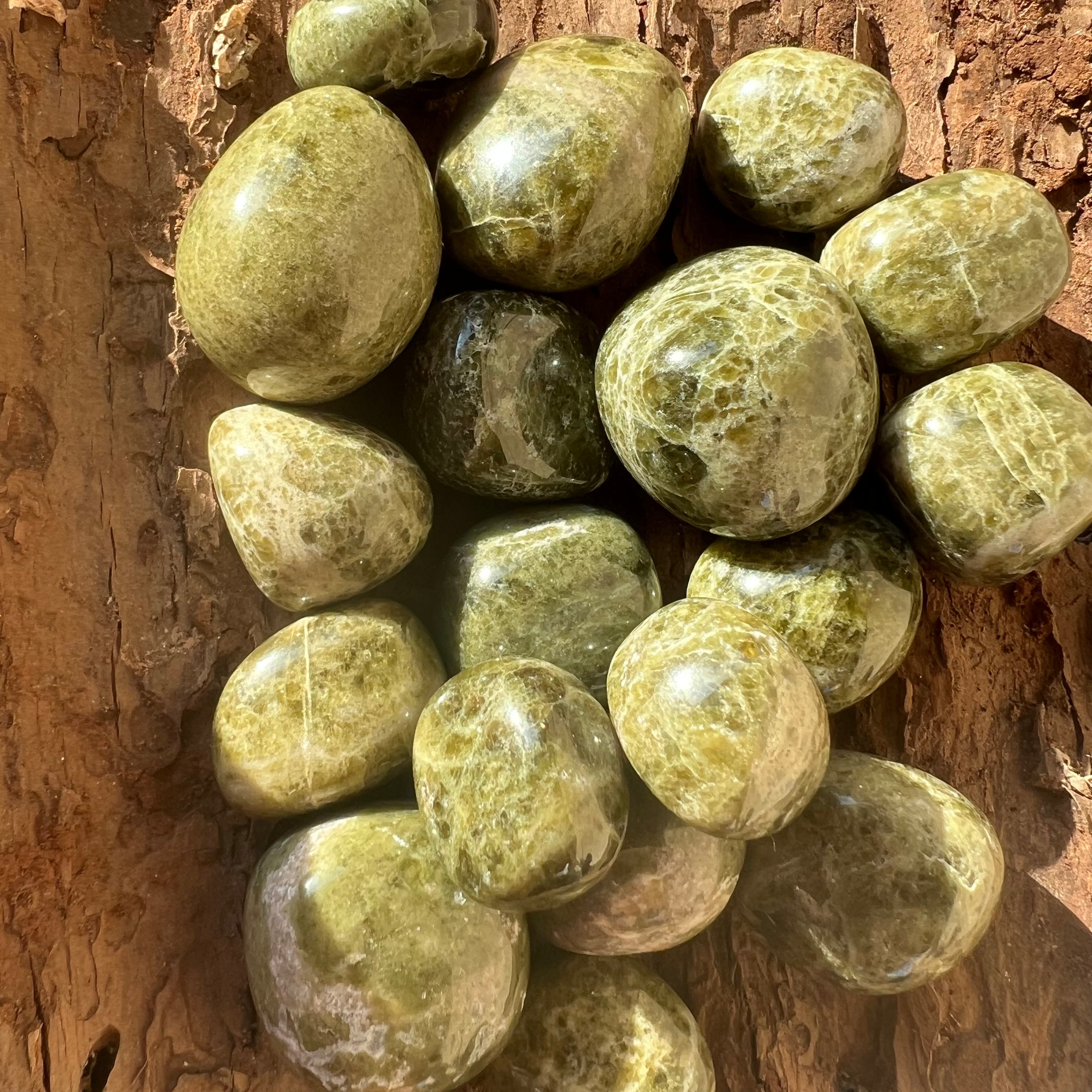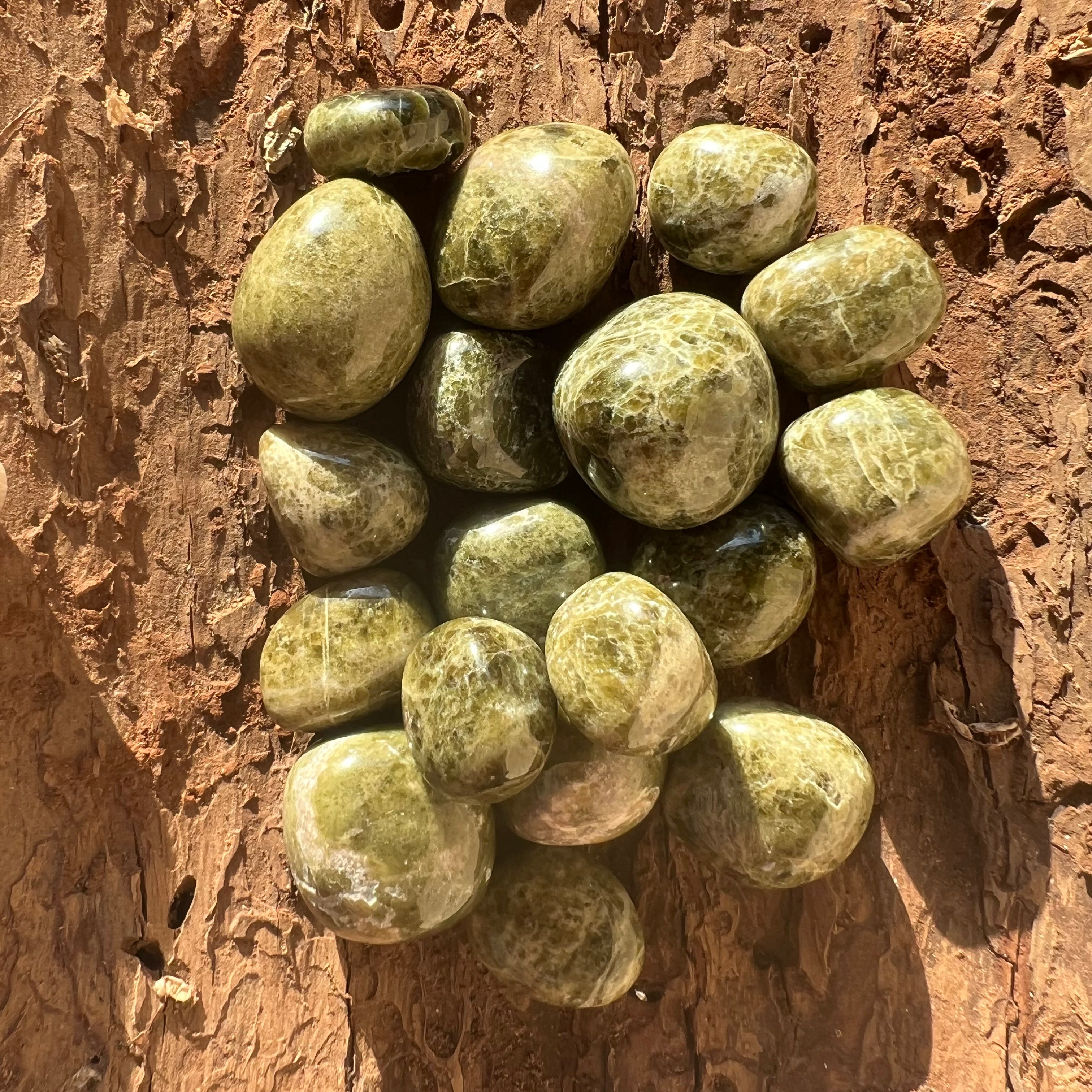 Vesuvianite pietra levigata mini, dimensioni comprese tra 2 e 3 cm. Il prezzo varia in base alla dimensione della pietra, ti preghiamo di selezionare la dimensione desiderata. Il prezzo si riferisce a un pezzo.